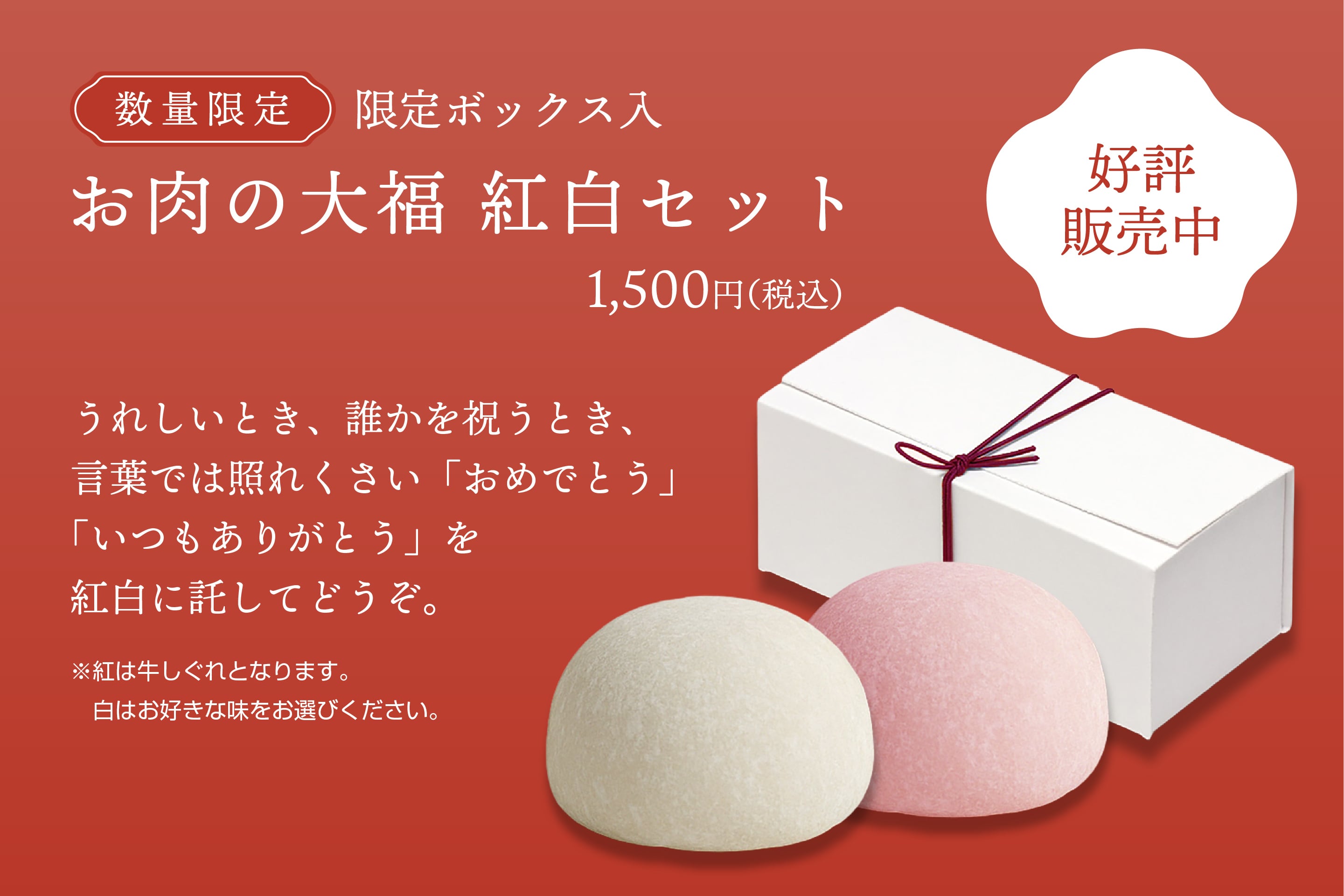 紅は牛しぐれ、白はお好みの大福をお選びいただけます。